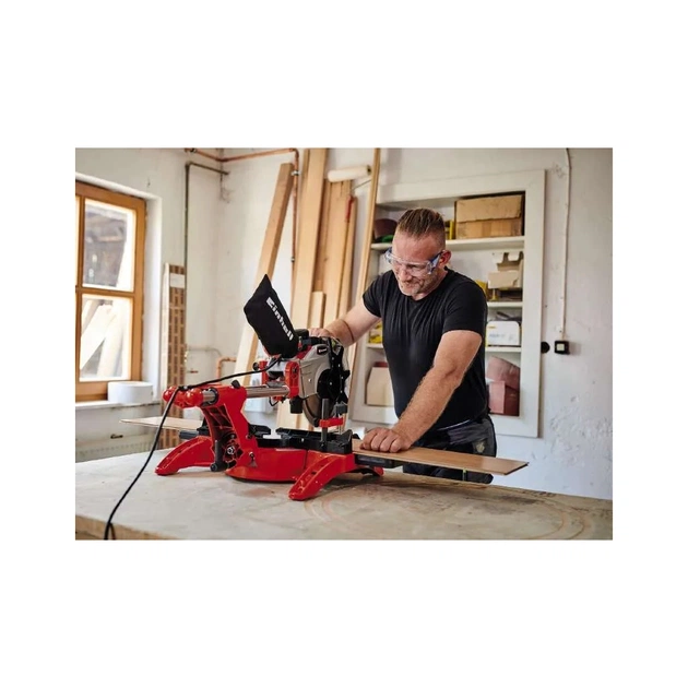 Двобічна торцева пила з протягуванням Einhell ТС-SМ 2534/1 Dual має пиляльну голову, яка може нахилятися на кут від 0° до +45° вліво та вправо, що забезпечує високу гнучкість під час налаштування різання з двох боків за одну операцію. Обладнана твердосплавним різальним диском HW, вона підходить для розпилювання деревини, ламінованих панелей і пластику.