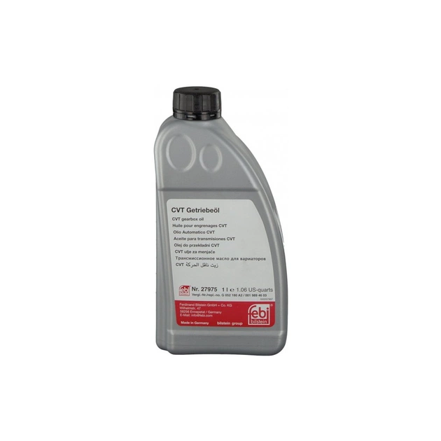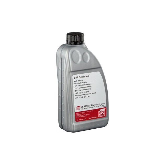 Febi CVT (27975FE) - Високоякісна рідина жовтого кольору, розроблена для безступінчатих автоматичних коробок передач - варіатора CVT, зі зчленованими приводними ременями або приводними ланцюгами з трапецієподібними металевими ланками. Відповідає вимогам фірмової класифікації Mercedes-Benz MB 236.20 і VAG VW TL 521.80, згідно з якими відмінно підходить для варіаторних трансмісій автомобілів MB класів А і В, а також Audi Multitronic. Рідина відрізняється ідеально збалансованою в'язкістю і забезпечує стабільну роботу трансмісії і надійний захист її вузлів і агрегатів від зносу за будь-яких стилях водіння і оточуючих температурах. Масло Febi ATF CVT жовтий 27975 формує на елементах міцну мастильну плівку, яка запобігає безпосередній контакт металевих елементів один з одним і захищає їх від зносу, відколів або задирок, продовжуючи безвідмовний ресурс трансмісії в цілому.