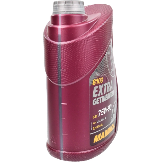 8103 MANNOL Extra Getriebeoel 75W-90 GL-4 / GL-5 LS – універсальна енергозберігаюча всесезонна трансмісійна синтетична олія останнього покоління для всіх видів механічних трансмісій. Рекомендовано для застосування у всіх типах МКПП із синхронізаторами (у тому числі важконавантажених), у диференціалах (у тому числі підвищеного тертя LS - Limited Slip), у кермових пристроях та в інших вузлах трансмісій, де зустрічаються підвищені тиски та ударні навантаження та де наказано застосування стандартів GL-4 та/або GL-5.