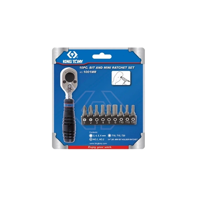 Тріскачка KING TONY під біти та головки 1/4" з набором біт 10 шт (1001MR)