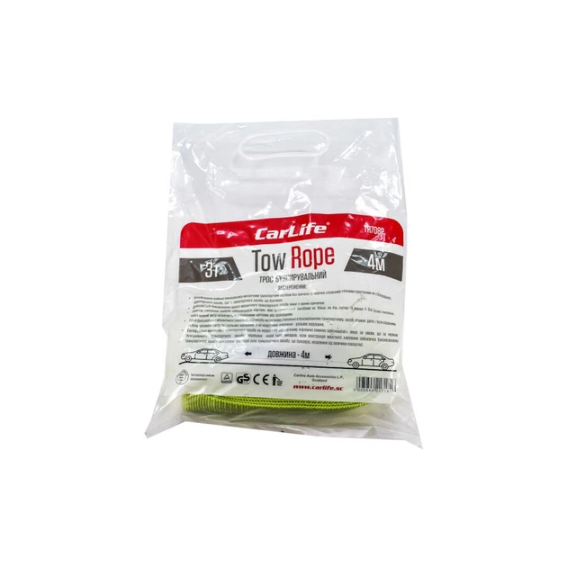 Буксирувальний трос Carlife TR708/P, недооцінений, але вкрай важливе і ефективне пристосування, яке повинно бути в автомобільному наборі кожного водія. Дана модель буксировочного троса з обох кінців оснащена металевими гаками-карабінами, з допомогою яких відбувається жорстке зчеплення.