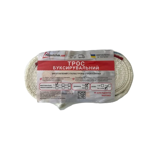 Трос буксирувальний Poputchik 7 т 5 м (29-007-5-IS) – це необхідна складова аварійного запасу автомобіля, бо він може знадобитися в найнесподіваніший ситуації. Буксирувальні троси пошиті зі стрічки, яка використовується для виробництва вантажопідйомних строп. Стійкі до агресивних умов використання.