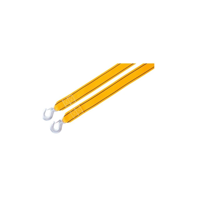 Буксирувальний трос СИЛА 284024 має яскравий жовтий колір, що робить його добре видимим на дорозі. Тип кріплення троса - гаки, які легко і надійно закріплюються на автомобільних бамперах або інших частинах транспортного засобу.