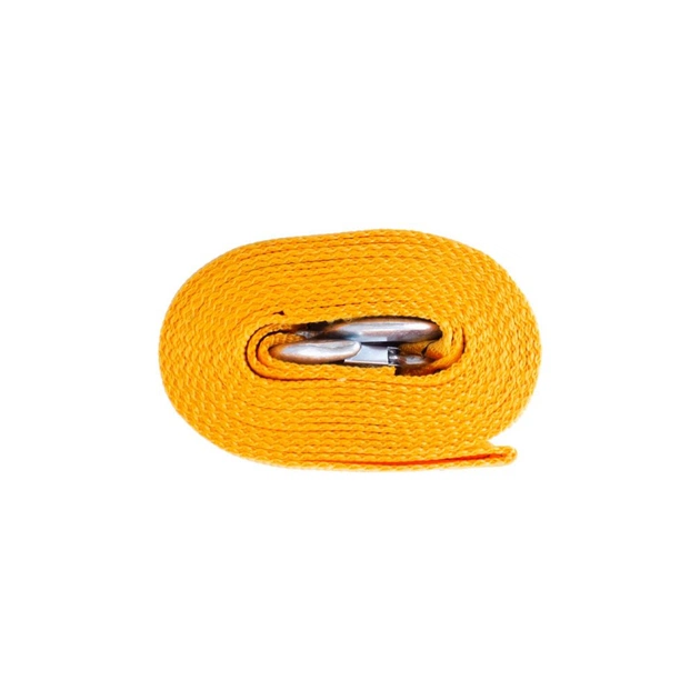 Буксирувальний трос СИЛА 284038 має яскравий жовтий колір, що робить його добре видимим на дорозі. Тип кріплення троса - гаки, які легко і надійно закріплюються на автомобільних бамперах або інших частинах транспортного засобу.
