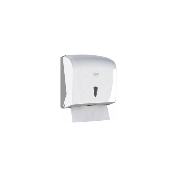 Диспенсер рушників паперових виготовлений з якісного ABS пластику білого кольору. Підходить для рушників Z укладання Розрахований на 200 аркушів. Закривається на ключ, який входить в комплект. Кріпиться до стіни за допомогою дюбелів, які входять в комплект. Прикрасить будь-який інтер'єр вашого приміщення.
