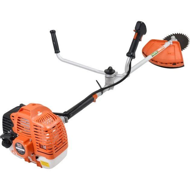 - Бензиновий 2-тактний двигун, потужністю 2.2 кВт, легко впорається з високою травою й бур'янами, а завдяки додатковому ножу 40T, оператор має можливість косити навіть дуже густі зарості.