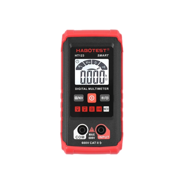 Мультиметр HABOTEST DC600В, AC600В поєднує кілька функцій вимірювання, таких як напруга змінного струму, напруга постійного струму, опір, безперервність ланцюга. Мультиметр має датчик NCV (безконтактний вимір напруги). Підсвічування екрана, попередження про низький заряд батареї.