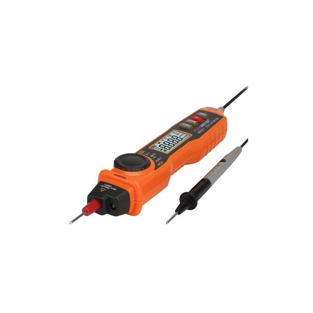 Мультиметр-ручка Protester PM8211 – це невеликий зручний мультиметр у формі ручки.Головна особливість його в тому, що у нього червоний щуп вбудований в корпус. Поруч з червоним щупом в корпусі розташований світлодіодний ліхтарик, яким зручно підсвічувати робочу зону. Чорний щуп у PM8211 теж не знімається, але розташований на протилежному кінці корпусу на дроті довжиною близько 1 м. Щупи якісні, на кожному є захисний ковпачок.