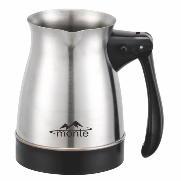 З електротуркою Monte MT-1456 Ви згадаєте неймовірний аромат кави, який розносився з кухні по всій квартирі, коли пінка піднімалася до країв старенької алюмінієвої турки. На щастя, цей прилад та сама турка, але її не потрібно "ганяти" на плиті, все зробить вбудований електропідігрів.