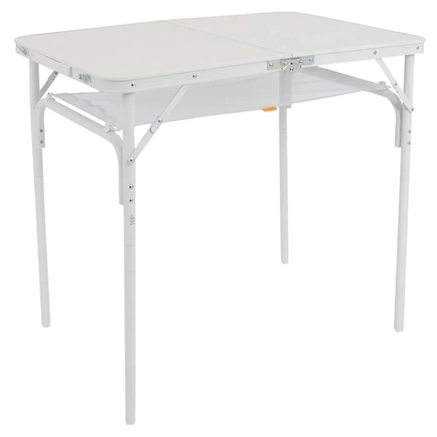 Ніжки з точним гвинтовим регулюванням легко виставляються навіть на нерівній поверхні. Стіл має складану стільницю та знімні ніжки, завдяки чому компактно складається у форму валізки (всього 60x45x7 см). Під стільницею передбачено сітчасту полицю для зберігання речей, а зручна ручка дозволяє легко переносити стіл.
