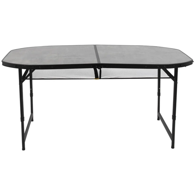 Більша версія столу Bo-Camp Northgate Oval 150x80 cm Black/Grey, відрізняється від молодшої моделі більшими розмірами стільниці і телескопічними нерозбірними ніжками, що регулюються в трьох рівнях висоти 55/65/70 см.