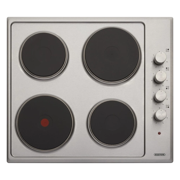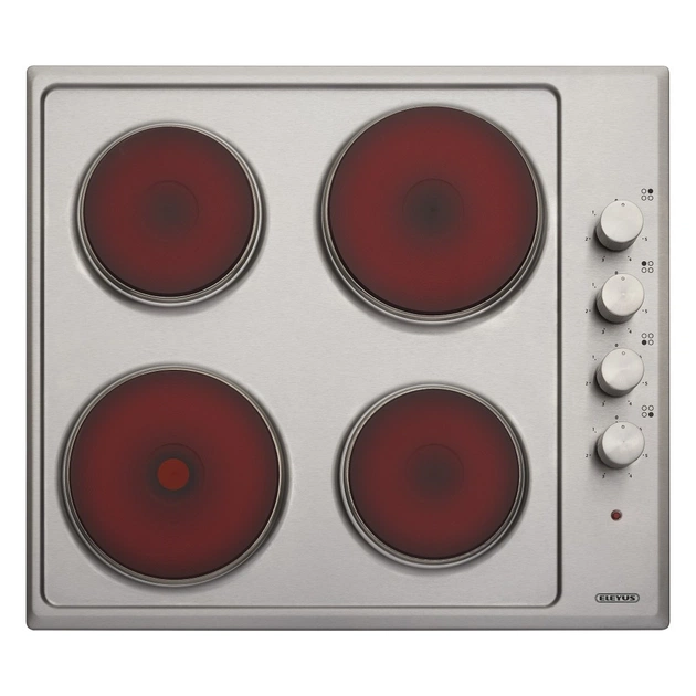 Eleyus OMEGA 601 IS H має чотири електричні конфорки, ідеально розташовані для максимального комфорту під час куховарства. Чавунні нагрівальні елементи швидко нагріваються та тримають тепло, що є важливим для ефективного приготування різноманітних страв. Потужність підключення складає 5500 Вт, що забезпечує швидке та енергоефективне приготування їжі.