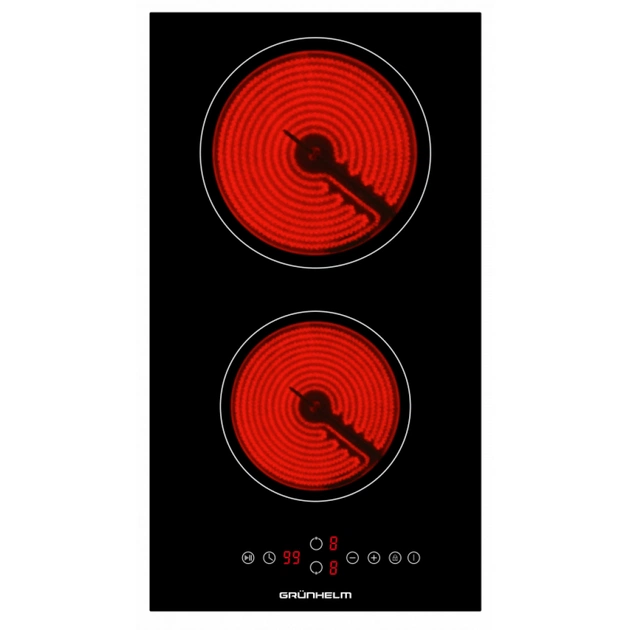 Електрична варильна поверхня Grunhelm GPC 623 B здатна приємно здивувати вас якісною і надійною роботою, яка є запорукою гарного настрою на кухні. Дана модель має зручне сенсорне керування. Варильна поверхня Grunhelm GPC623B дві Hi-Light конфорки. Покриття робочої поверхні в даній моделі склокераміка, що забезпечить швидкий і ефективний нагрів страв. Склокерамічна варильна поверхня оснащена всіма необхідними захисними функціями: захист від перегріву, захист від переливу, блокування від дітей і безпечне автовідключення. Також присутній індикатор залишкового тепла.
