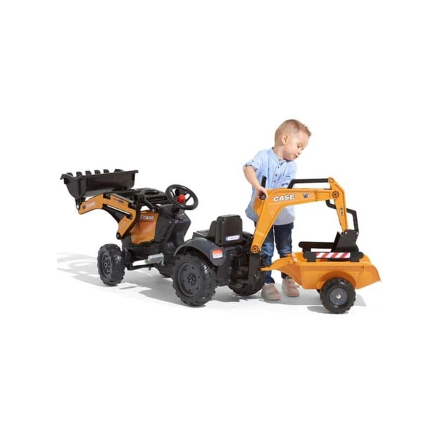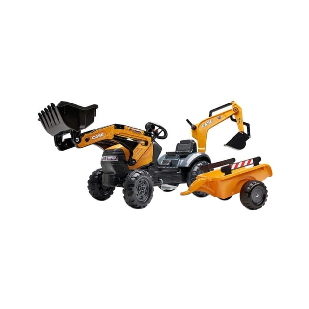 Дитячий трактор на педалях з причепом, переднім та заднім ковшами Falk 967N Case Ce – дуже яскравий великий трактор з активними навантажувачами та причепом допоможе батькам та дітям весело та активно проводити час на вулиці.
