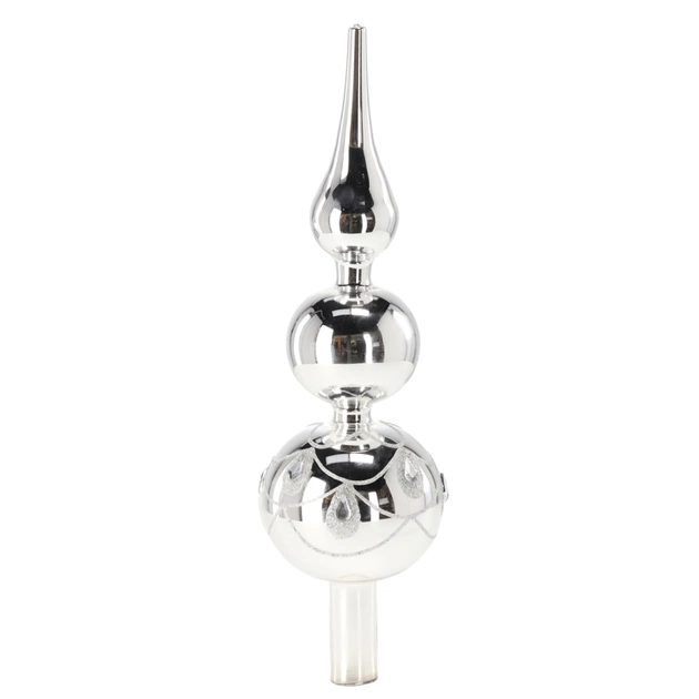 Верхівка на ялинку Chomik декорована 30 см, скло, срібна (5900779894396)