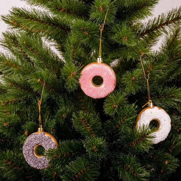 Ялинкові прикраси Chomik "Пончики" рожевого кольору — це яскраве та креативне доповнення до святкового оздоблення, яке дарує інтер’єру легкий, ігровий настрій. У наборі три пластикові пончики діаметром 8 см, кожен з яких має декоративну поверхню з ефектом глазурі й кольорової посипки. Рожевий колір надає прикрасам особливого шарму, роблячи їх помітним акцентом на ялинці або в тематичних композиціях. Кріплення на нитці входить у комплект, що дозволяє швидко й зручно розміщувати прикраси як у приміщенні, так і на вулиці.