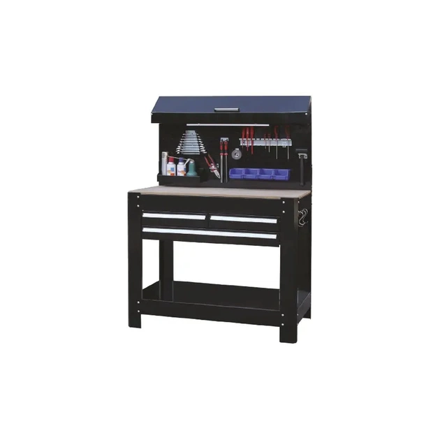 Професійний сліпий верстат TORIN TSA4524C. Цей предмет меблів - повноцінне робоче місце майстра, де всі інструменти знаходяться під рукою. Для їх розміщення передбачений ящик з трьома висувними полицями.