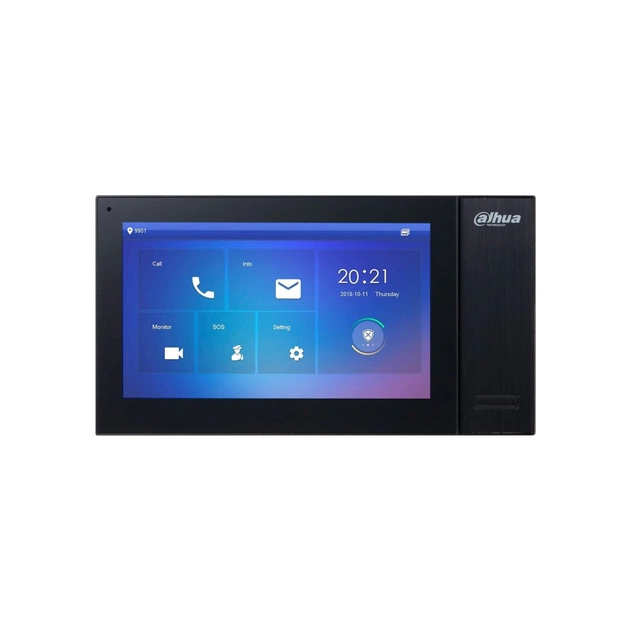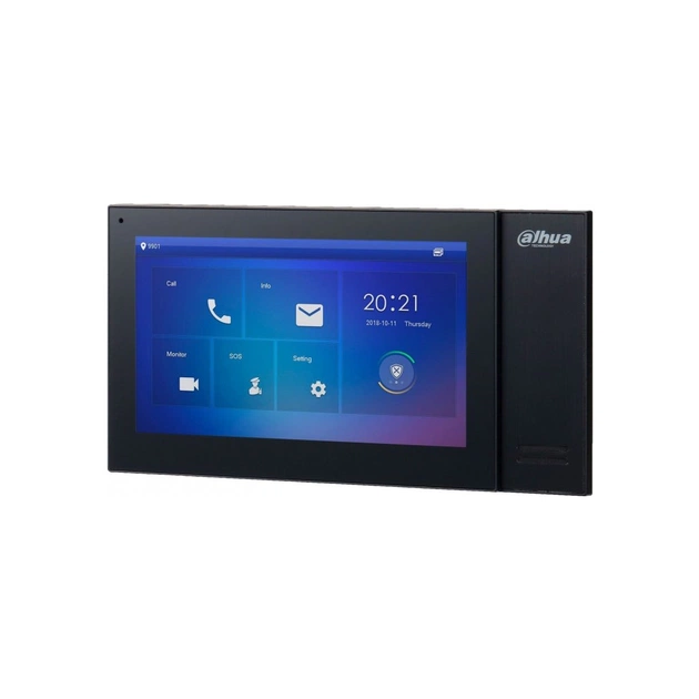 Dahua DHI-VTH2421FB-P — накладного монтажу сенсорний IP-монітор ємнісного типу з діагоналлю сім дюймів. У підтримці стандарт PoE і SD-карти 8 ГБ. Властива чудова продуктивність та економність. Дисплей виділяється чудовим подаванням картинки в умовах високої ефективності екрана 1024 на 600 пікселів. Реалізована можливість з'єднання з мережевими камерами відеоспостереження.