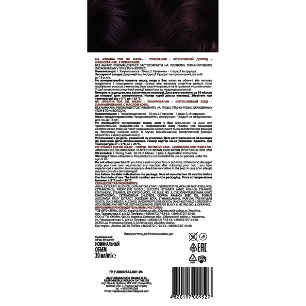 Особливості Hair Care Ton Oil Mask від Acme Color:
