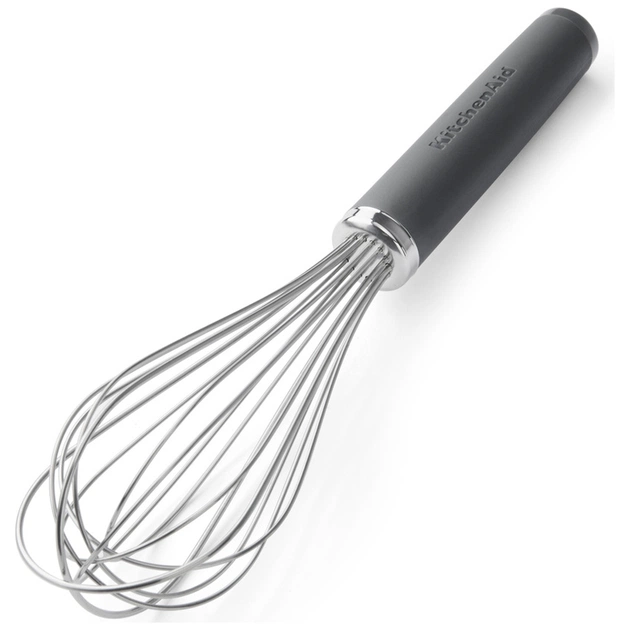Цей класичний плоский віночок KitchenAid — це універсальний кухонний інструмент, який можна використовувати для видалення глазурі зі сковорідок, видалення грудок із соусів і підлив, змішування інгредієнтів у тісто, а також обережно піднімати та подавати яйця-пашот. Ручка розроблена для зручності та плавності роботи, що робить її простою у використанні. Завдяки міцному дроту з нержавіючої сталі цей міцний інструмент витримує щоденне використання, а також його можна мити в посудомийній машині для легкого очищення.