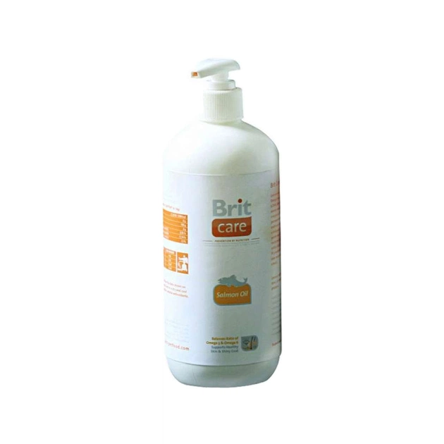 Brit Care Salmon Oil — це харчова домішка для собак усіх порід, корисна для всього організму тварин. Основна перевага олії лосося в тому, що вона є природним джерелом поліненасичених жирних кислот Омега-3 (EPA і DHA) й Омега-6, які надають позитивний вплив на багато метаболічних процесів в організмі.