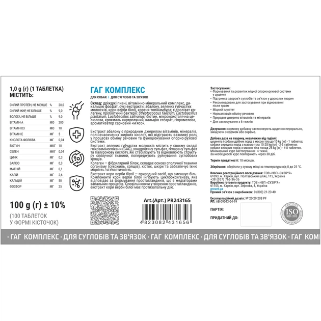Вітаміни для собак ProVET ГАГ комплекс для суглобів та зв'язок 100 табл. (4823082431656)