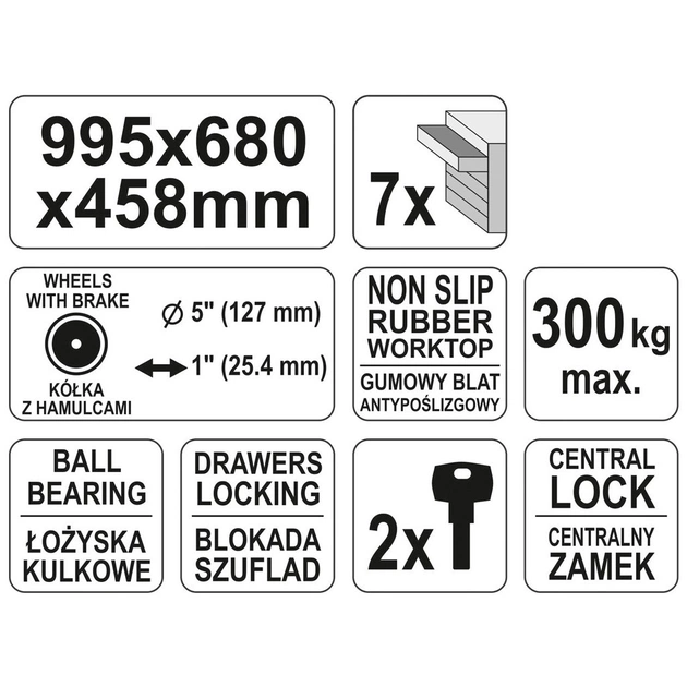 Візок для інструменту Yato 7 секц, 680x458x995 мм (YT-0914)