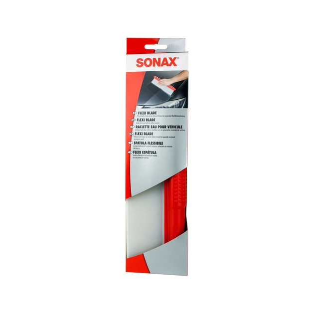 Водозгін силіконовий SONAX Flexiblade (417400) блискавично видаляє краплі води з вологих поверхонь, максимально дбайливо впливаючи на поверхню. Завдяки Т-подібній формі леза з високоякісного силікону дуже легко набуває форми будь-якої поверхні, тому працювати ним швидко та зручно. Ідеально підходить для застосування після миття автомобіля, а також у випадку, якщо мокре або запітніле скло заважає огляду.