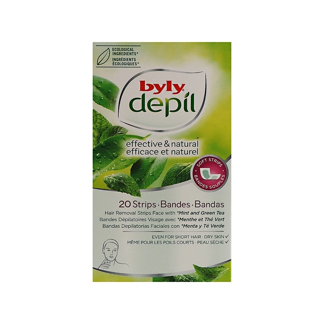 Воскові смужки Byly Для депіляції шкіри зони обличчя з М’ятою, Зеленим чаєм, Алое 20 шт (8411104040519)