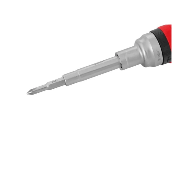 КорпусRonix RH-2725 - це компактний набір вагою 330 грамів, який постачається з викруткою 6.35 мм x 8 мм x 50 мм. Викрутка довжиною 24 см виготовлена зі неіржавіючої сталі і має багатокомпонентну пластикову ручку, яка забезпечує зручне захоплення і вищий крутний момент. Ручка виготовлена з поліпропілену, ABS і TPR матеріалів, що зменшує втому рук під час користування, а також допомагає контролювати роботу. Ця ручка з храповиком пропонує три різні режими роботи храпового механізму: вперед, назад і блокування. Режим "вперед" використовується для закручування за годинниковою стрілкою, "назад" дозволяє відкручувати проти годинникової стрілки, а режим "блокування" зупиняє обертання храповика. Крім того, на кінці цієї ручки можна зберігати невикористані насадки. Все, що вам потрібно зробити - це повернути червону частину ручки, щоб знайти 3-сегментний відсік для зберігання всіх насадок. Насадки виготовлені з високоякісної сталі S2, яка відома своєю міцністю та твердістю.