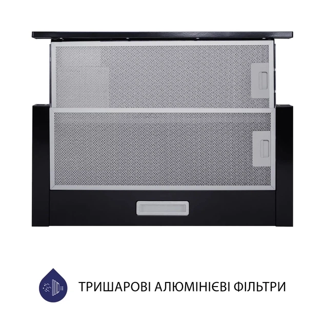 Механічна панель управління дуже проста та інтуїтивно зрозуміла. На ній розташовані перемикачі для увімкнення/вимкнення витяжки, освітлення та перемикання швидкостей. Активувати потрібну функцію можна одним натиском. Механічні перемикачі управління найбільш надійні та довговічні.