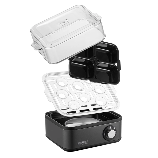 У яйцеварці можна готувати до 8 яєць одночасно. Готовність яєць залежить кількості води. Ніколи не пропустіть час приготування! Виконайте кілька отворів у яйцях за допомогою голки для яєць, щоб вони не лопнули під час приготування. Помістіть яйця на лоток для яєць і додайте необхідну кількість води за допомогою мірного стаканчика, щоб додати яйця круто, некруто або напівготові. Після приготування яйця можна зберігати у теплі до моменту вживання. З метою безпеки ставте яйцеварку на рівну суху поверхню. Підключіть шнур живлення до заземленої розетки. Індикатор загориться, сигналізуючи про увімкнення приладу.