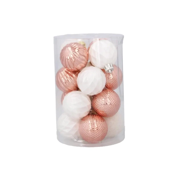 Ялинкова іграшка Chomik пластикові кульки 16 шт, 4 см, рожеві і біли (5900779877351_1)