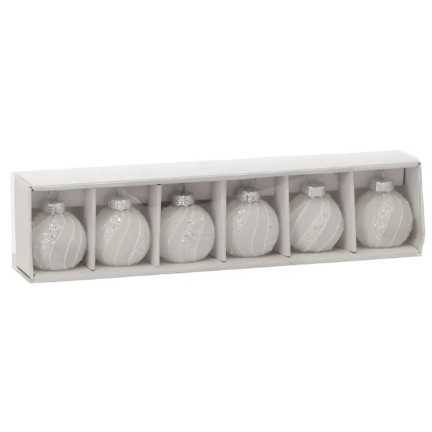 Ялинкова іграшка Chomik скляні кульки 4 см, 6шт, білі з блискітками (5900779855786)