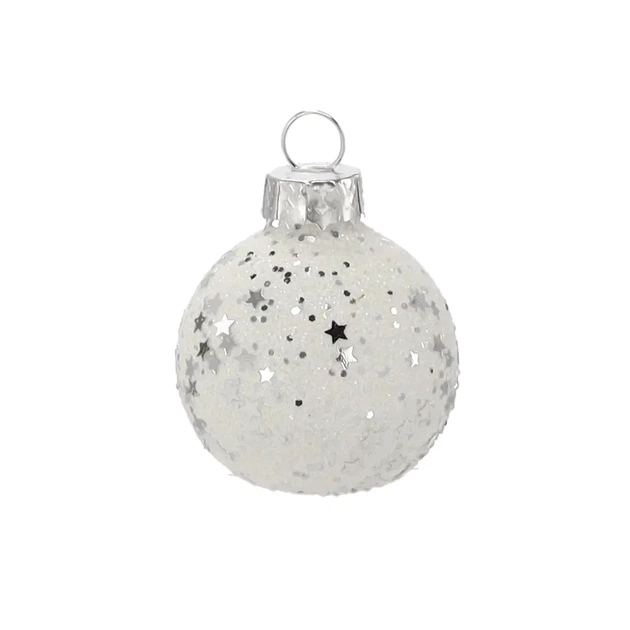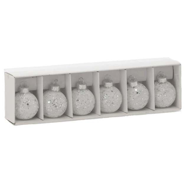 Ялинкова іграшка Chomik скляні кульки 6 шт, 4 см, білі з паєтками (5900779882164)