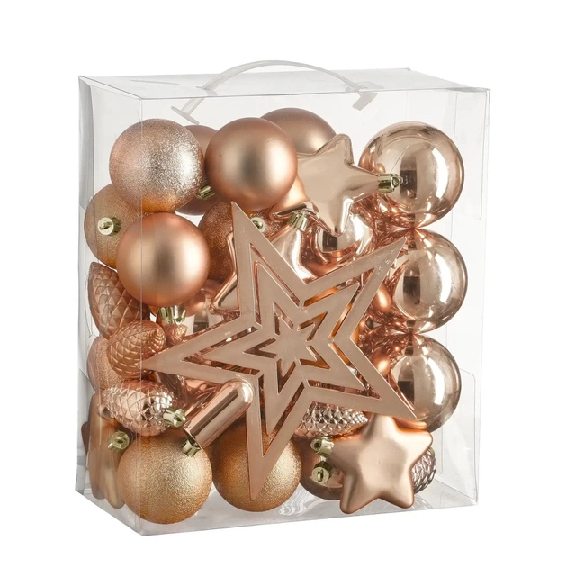 Ялинкова іграшка House Of Seasons Кульки і прикраси Пластик 40 шт D8 см D7 см D6 см Персик (8720967923694)