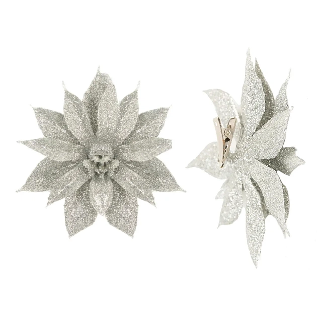 Коли мова заходить про різдвяні свята — новорічного декору багато не буває! Оригінальний варіант оздоблення — виблискуючі сріблясті квіточки, що легко кріпляться кліпсою та будуть цікавим акцентом на вашому новорічному дереві або як доповнюючий елемент декорування інтер'єру.