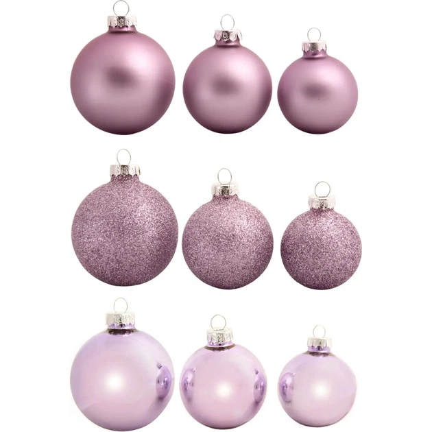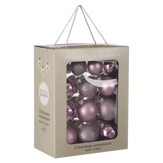 Ялинкова іграшка House Of Seasons Скляні кульки 26 шт D7 см D6 см D5 см Бузкові (8720362102854)