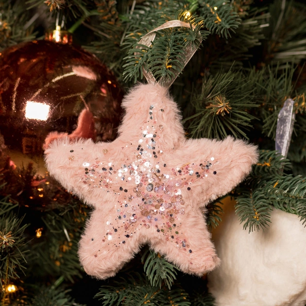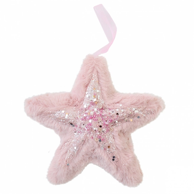 Ялинкова іграшка YES! Fun зірка пухнаста рожева з декором, 16*16 см (973538)