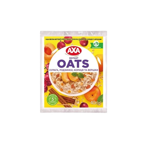 Їжа швидкого приготування АХА Каша Вівсяна з курагою, родзинками, корицею та вершками 40 г (4820237691071)