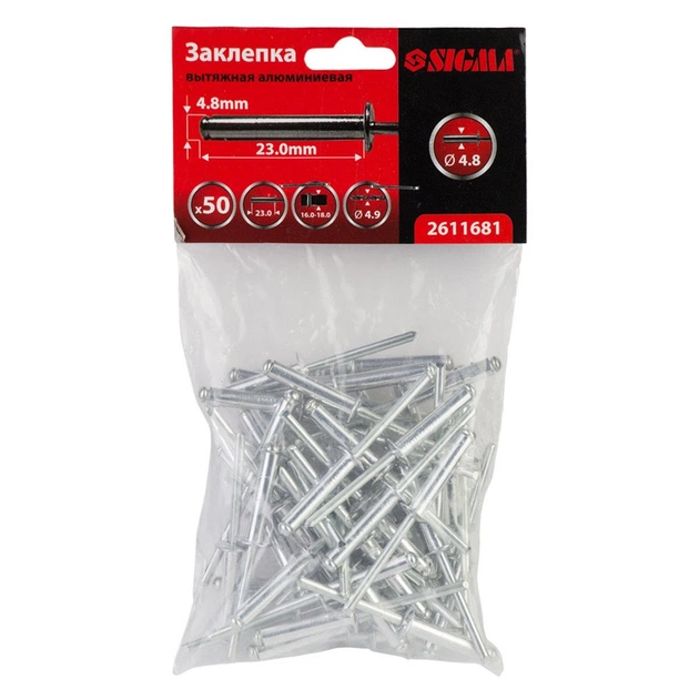 Заклепки Sigma алюмінієві Premium 4.8x23мм 50шт (2611681)