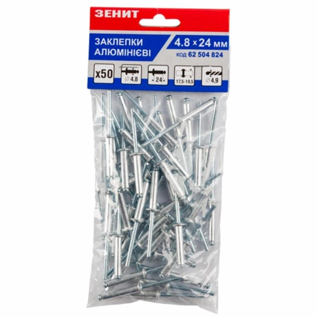 Заклепки Зеніт алюмінієві 4.8x24 (50 шт) (62504824)