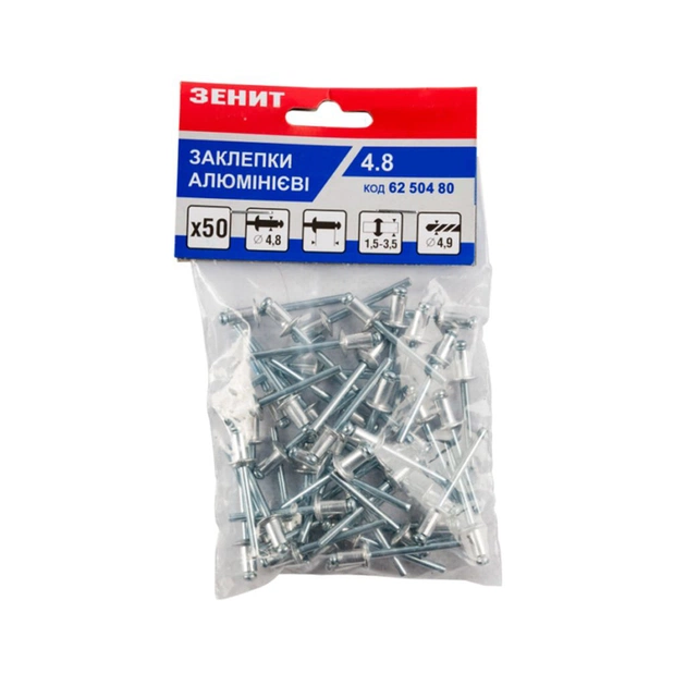 Заклепки Зеніт алюмінієві 4.8x6 (50 шт) (62504806)
