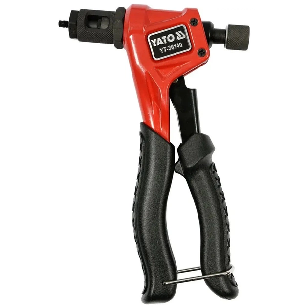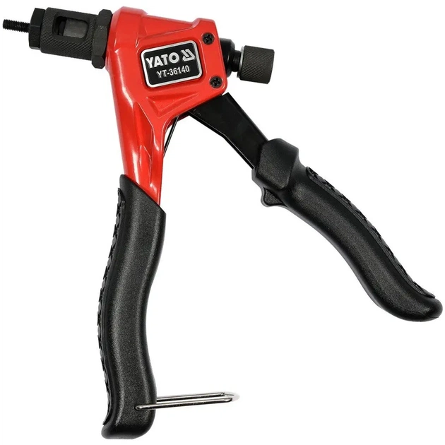 Заклепник нарізний призначений для міцного з'єднання кількох деталей нарізними металевими заклепками М3, М4, М5, М6. Міцна сталева конструкція доповнена зручними гумовими ручками. До комплекту входить: 4 головки з різзю M3, M4, M5, M6.