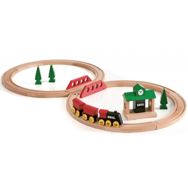 Набір включає 22 елемента. Основними елементами є залізничне полотно (вісімка), паровоз з двома пасажирськими вагонами, вокзал і три дерева. Вагончики залізниці з легкістю з'єднуються за допомогою магніту, утворюючи рухомий склад.