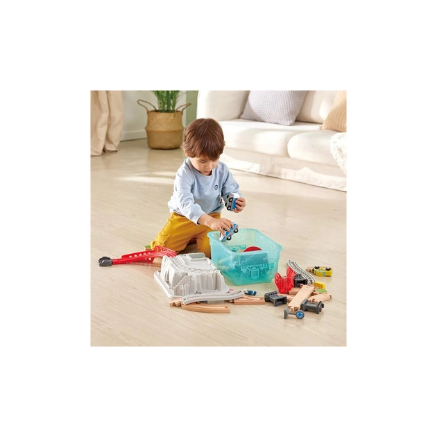 Особливістю набору є ящик для зберігання, стилізований під місто, з незвичайною скелястою кришкою. Контейнер стане відмінною декорацією та доповненням до рейок.