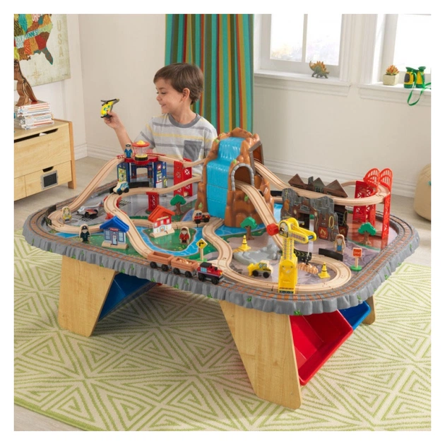 Барвистий зовнішній вигляд, пильна увага навіть до найдрібніших деталей, великий ігровий світ, що дає простір для уяви дитини — усе це є складниками ігрового набору KidKraft Waterfall Junction Train Set and Table.