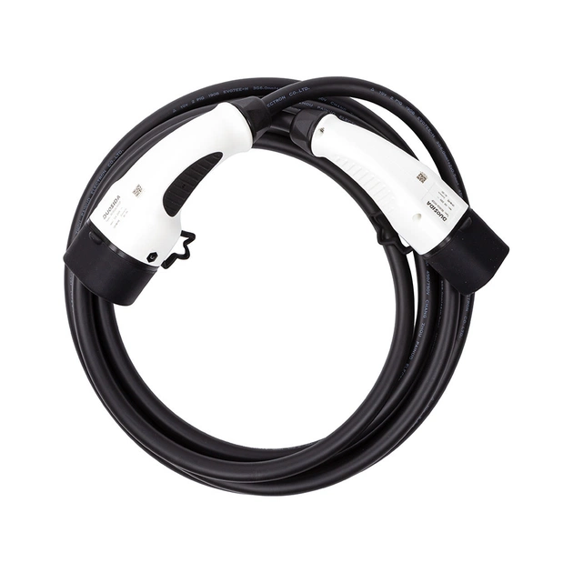 Кабель для заряджання електромобілів Type 2 - Type 2, 32А, 7.2kW, 1-фазний, 5м. Виготовлений з надійних матеріалів, стійких до тиску, стирання, легких ударів з класом захисту IP44.