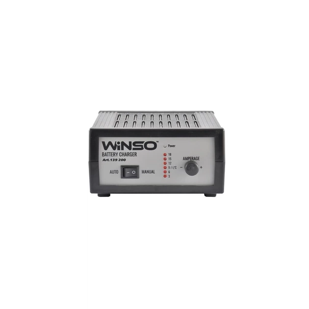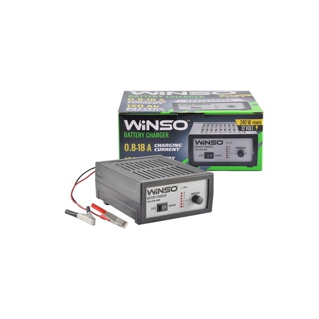 Зарядний пристрій Winso призначений для заряджання акумуляторів з напругою 12В, у тому числі повністю розряджених (до нуля), різної ємності, як у повністю автоматичному, так і неавтоматичному режимі з можливістю ручного регулювання сили зарядного струму.