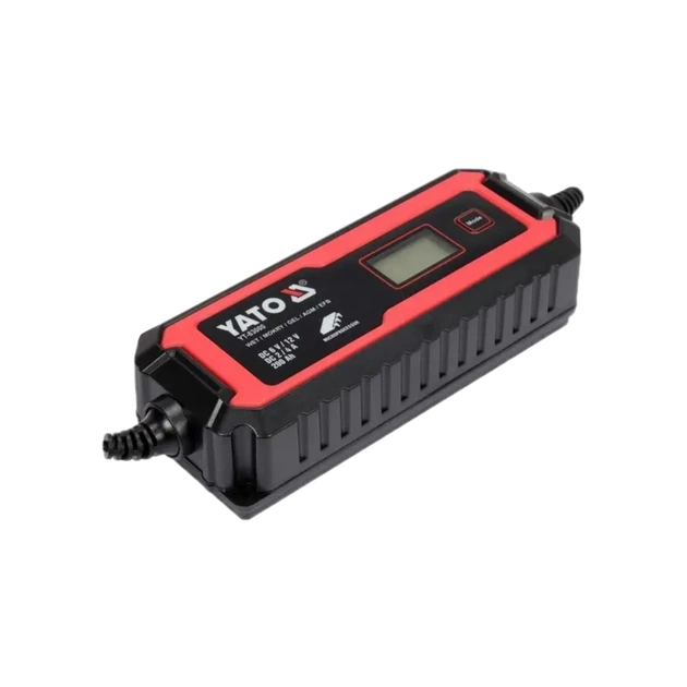 Yato YT-83001 - Професійний пристрій для заряджання акумуляторів 6 і 12 В мотоциклів, легкових автомобілів, вантажних автомобілів, сільськогосподарських тракторів, моторних човнів. Він дозволяє заряджати так звані рідинні батареї, гелеві батареї, батареї AGM та EFB.